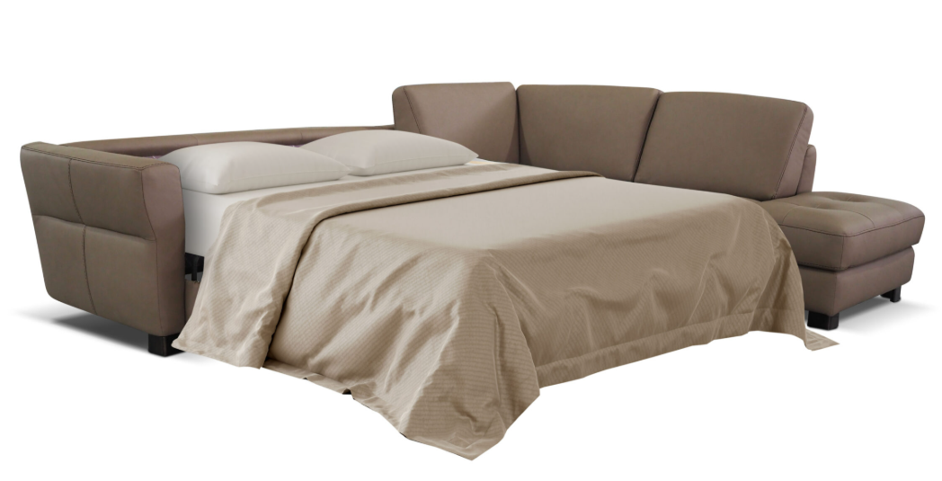 Cornelia does not look like a sofabed and has an extremely good seating comfort as the seat is filled with the right combination of memory foam. It is built with a state of the art mechanism which has wooden slats, then seats and backs are always attached during the opening and closing. The mattress has a 6” thickness and is made in a high-end foam called Waterlilly, which has a high density, 100% natural and breathable. Sleeping on this sofabed is just like sleeping in a regular bed.