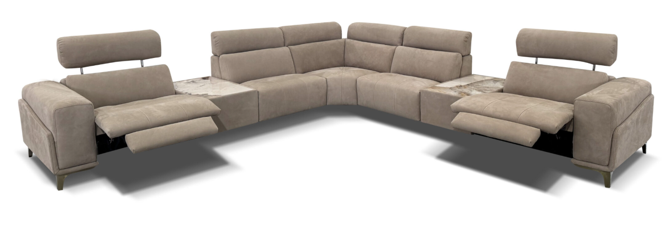 Loki is a power motion with a transitional modern design which easily adapts to all living spaces. This model is equipped with a state of the art power mechanism and touchpad that individually controls headrest and footrest allowing maximum comfort and support for your head, back and legs even for the tallest people. This model is available with two seat width options and it’s modularity allows to make any size sofa or sectional.