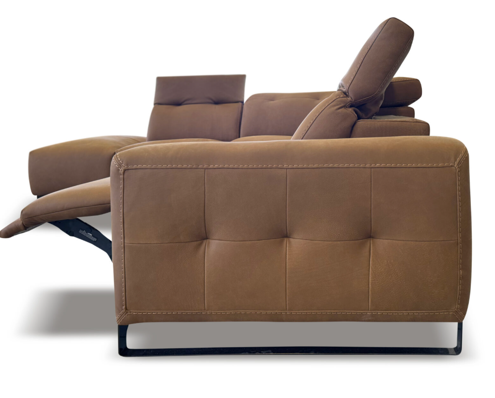 Mary is a unique power motion with a transitional modern look. Mary is equipped with a state-of-the-art power mechanism and touchpad that individually controls the headrest and footrest allowing maximum comfort and support for your head, back, and legs even for the tallest people. The headrest mechanism while opened, is not visible as it is covered with leather. This model is available with two seat width options and its modularity allows you to make any size sofa or sectional. In addition, the seat is made with memory foam so the extreme soft seating comfort perfectly adapts to the body.
