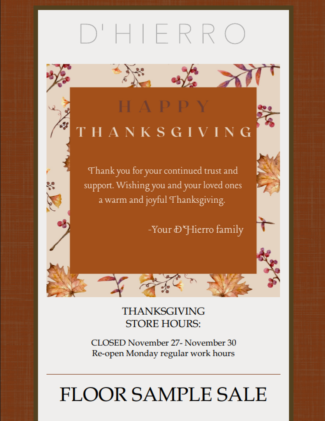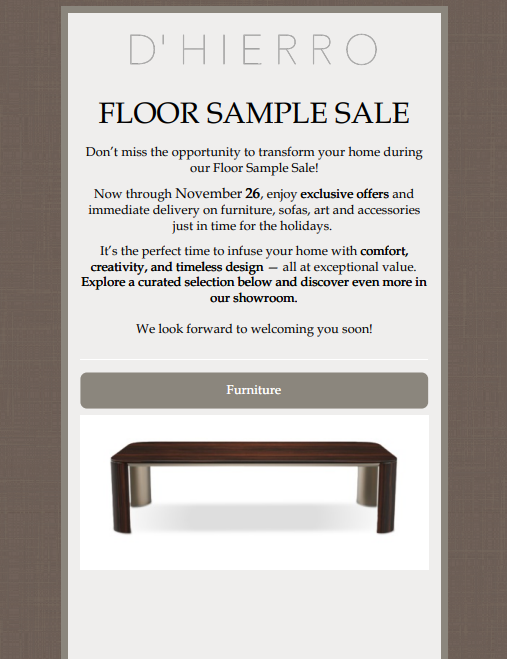 October 2025: Floor Sample Sale