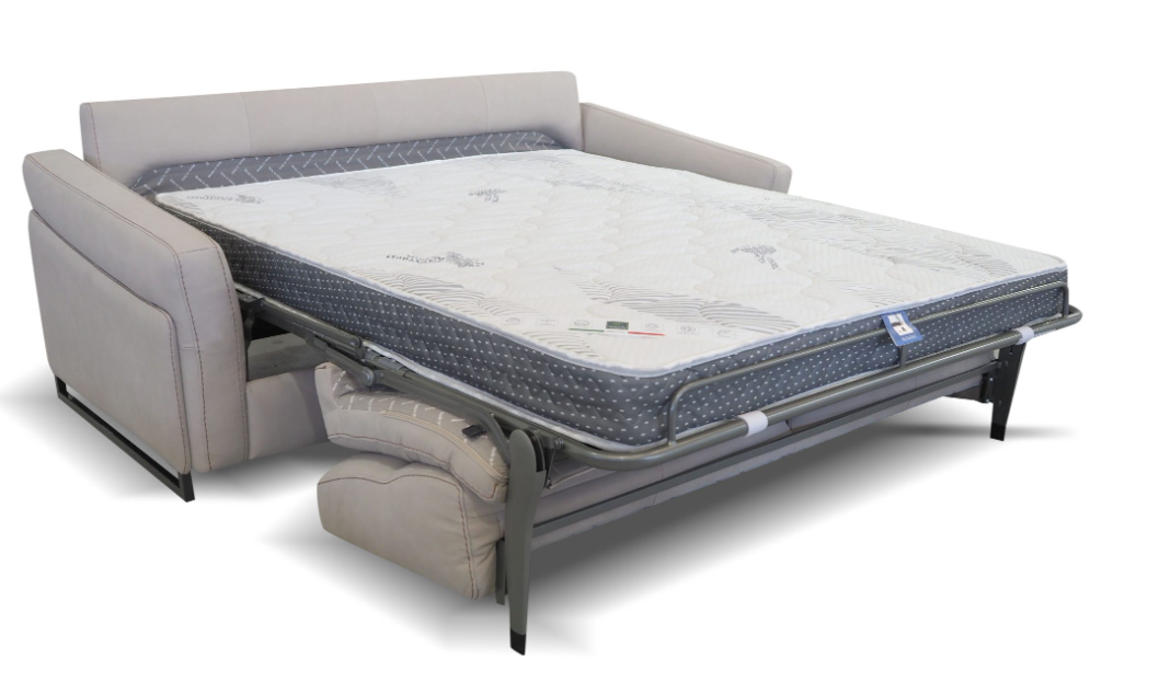 Pompea does not look like a sofabed and has an extremely good seating comfort as the seat is filled with the right combination of memory foam. It is built with a state-of-the-art mechanism which has wooden slats, then seats and backs are always attached during the opening and closing. The mattress has a 6” thickness and is made in a high-end foam called Waterlilly, which has a high density, is 100% natural, and is breathable. Sleeping on this sofabed is just like sleeping in a regular bed.