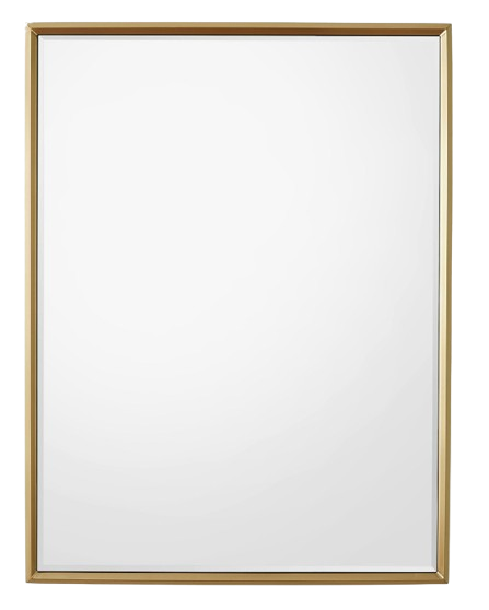 The Reeves Mirror showcases a contemporary aesthetic with its sleek stainless steel frame and sophisticated brushed brass finish. Featuring a beveled edge, this mirror brings a touch of refined style to any space while beautifully reflecting light.