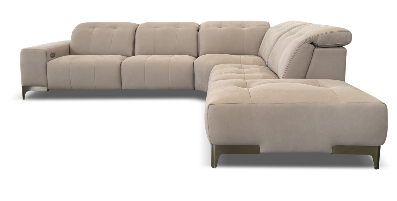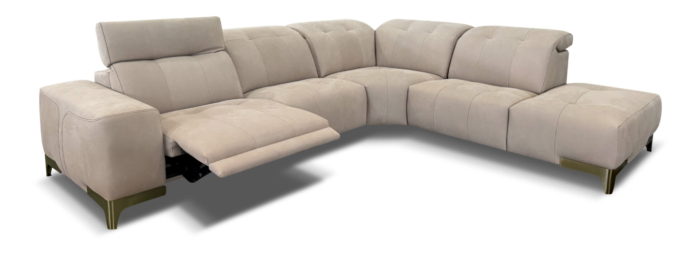 Rosy is a unique power motion with a a transitional modern look. Rosy is equipped with a state-of-the-art power mechanism and touchpad that individually controls headrest and footrest allowing maximum comfort and support for your head, back and legs even for the tallest people. The headrest mechanism while opened, is not visible as it is covered with leather. This model is available with two seat width options and it’s modularity allows to make any size sofa or sectional. In addition, the seat is made with memory foam so the extreme soft seating comfort perfectly adapts to the body.