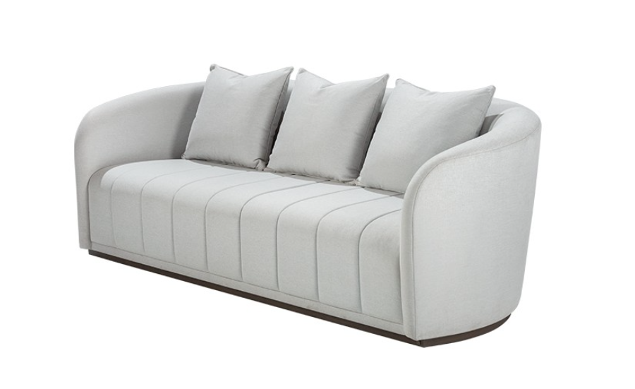 Gem Sofa is characterized by having generous proportions. The upper arm corners of the sofa have a cushion shape, the main inspiration for the collection. The shape of the backrest is molded until it reaches the arm, where its thickness is reduced, converging on a delicate silhouette that embraces its occupants.