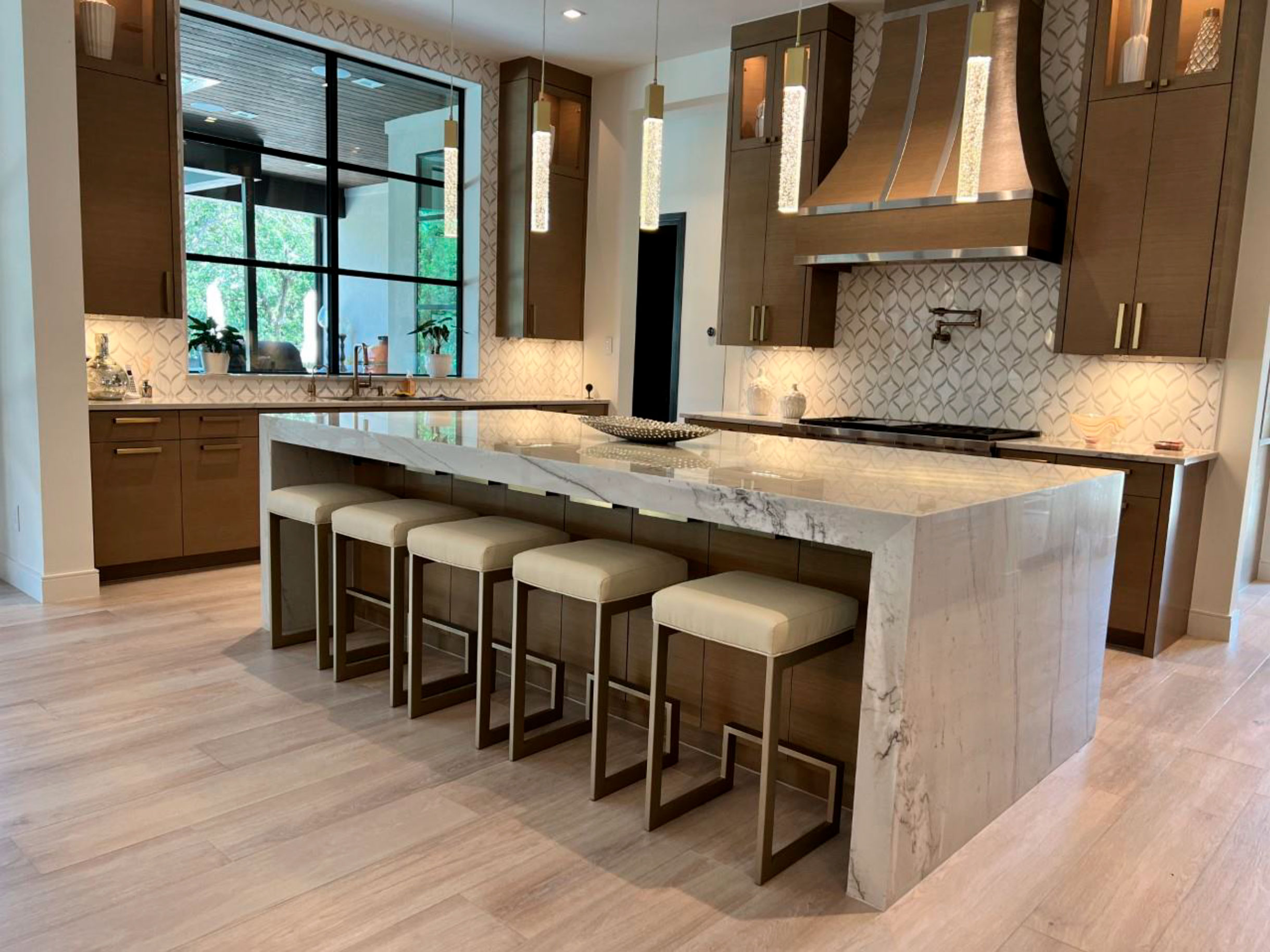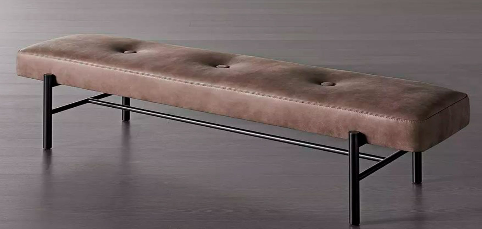 Steel barstools and benches can be customized in different sizes, metal finishes, and an exclusive selection of performance fabric, leather or faux leather.